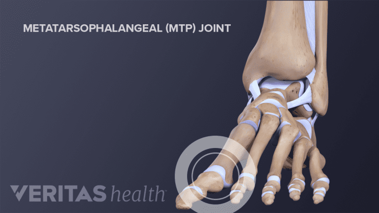 Turf toe is a sprain to the metatarsophalangeal joint (MTP)—the largest joint in the big toe, which connects the first bone in the toe and the first long bone in the foot. When the MTP joint is injured or sprained, it can lead to varying degrees of pain, bruising, swelling, and sensitivity below the joint or at the ball of the foot.